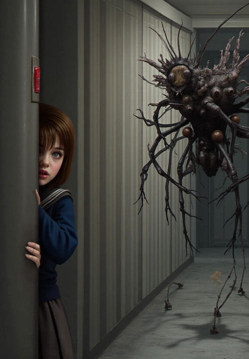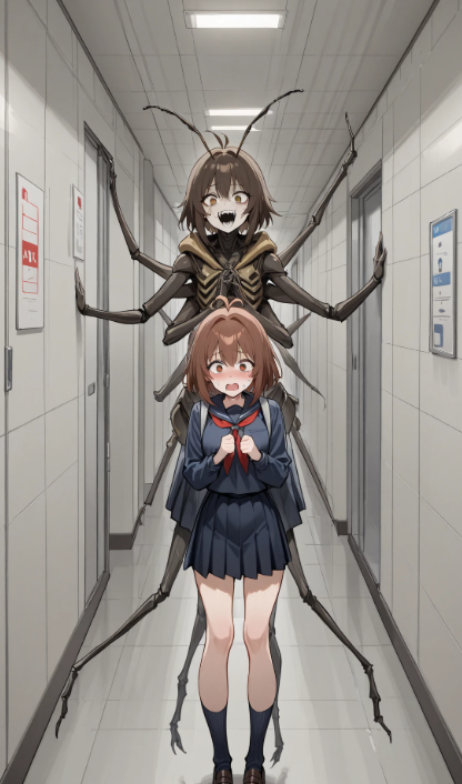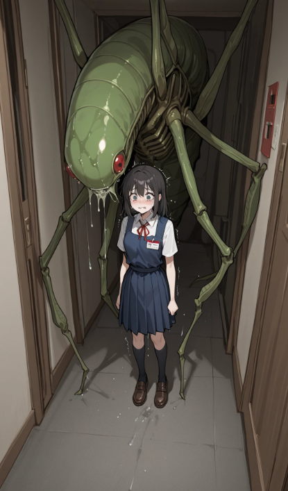 結局こんな感じのCGしか生成されず断念。エイリアン側の要素と少女側の要素がごっちゃになるね。今回はエイリアンと少女だけど生成したい対象が2体以上いるとそれらが明確に違う場合、結構まじっちゃって難しくなるね。