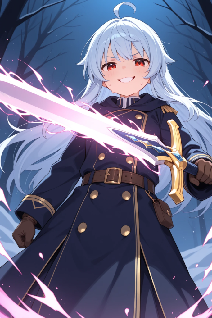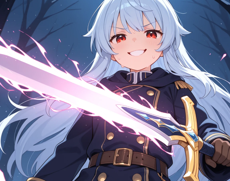 無難な感じに落ち着く。当初は走る擬人化した聖剣を走って追い抜く画像を生成しようとしたけどうまくいかず。背後から剣が飛んで来たらそう見えるんじゃね?ってそんな感じを出そうとしてもどうしても剣を手から離してくれなくて。めんどくなって普通に聖剣抜いた感じで。