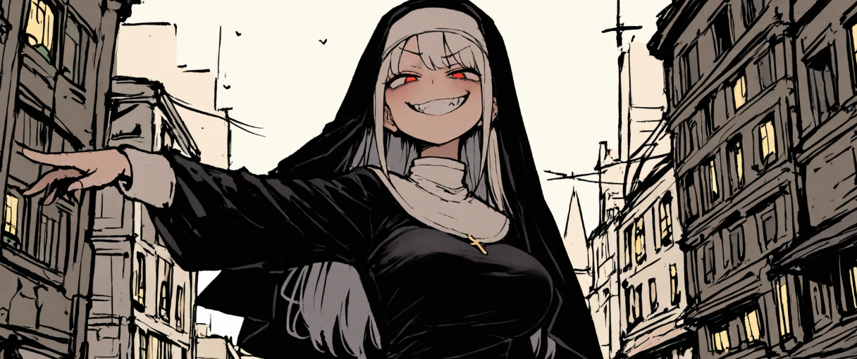 表では敬虔なシスター、裏ではストリートギャングのボスで自分は流れ着いてこの町に来た設定。