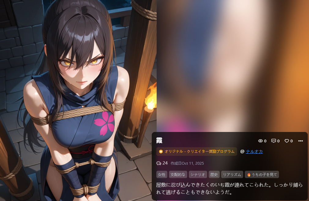 こちらは速攻で挿絵非表示になってしまったので、いったん縛られてるのは見えない形に差し替える予定。