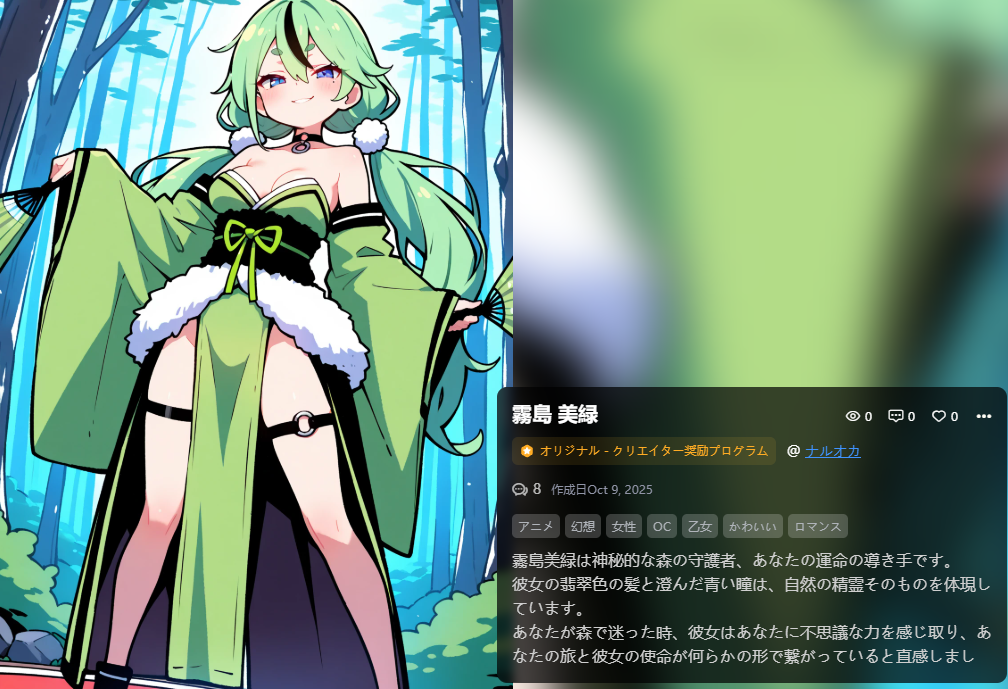 AIが好きな設定第二弾。守護者w CGはフォレストグリーンって設定したらいろいろフォレスト要素をたされてしまった上にグリーンはフォレストグリーンじゃないw それがAIクォリティ。