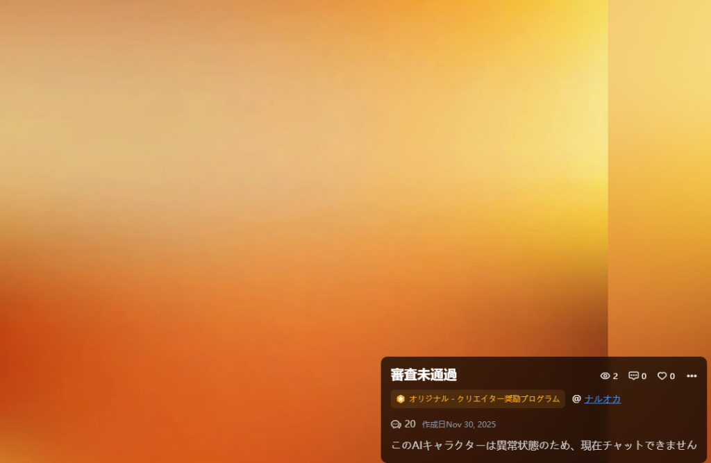 設定の中にもエロ要素いれてなかったのでnsfw許可してるよーっていう文言を削除して再審査願い。というか、再審査願いするまでもなく非公開になってなかったかも……。ちゃんと確認すればよかった。