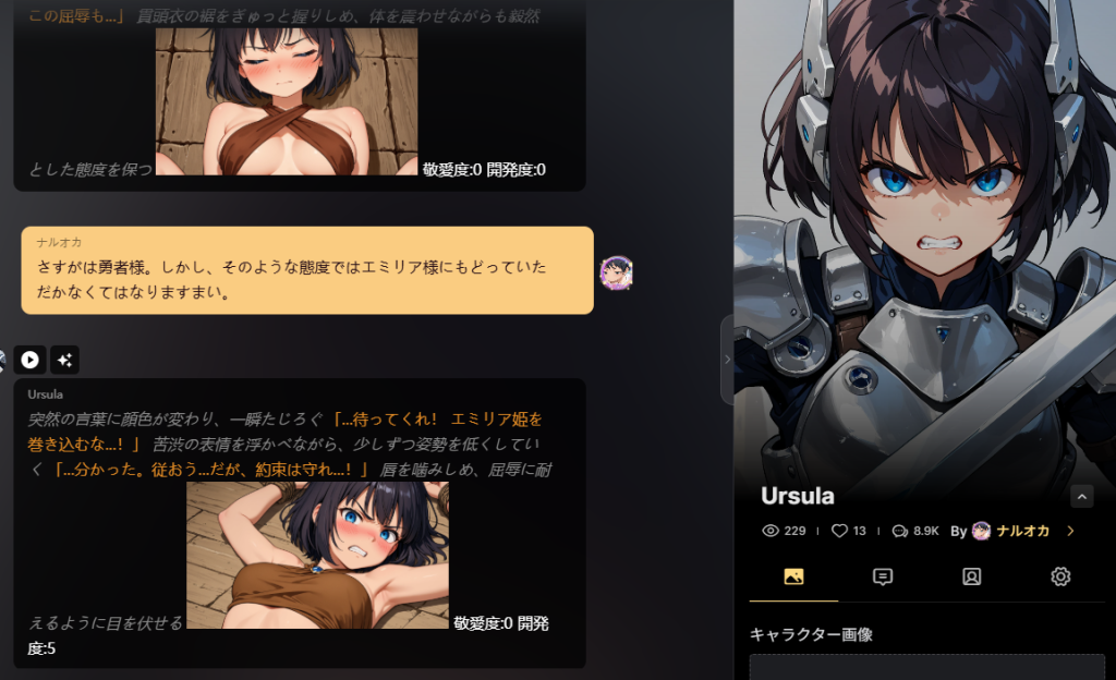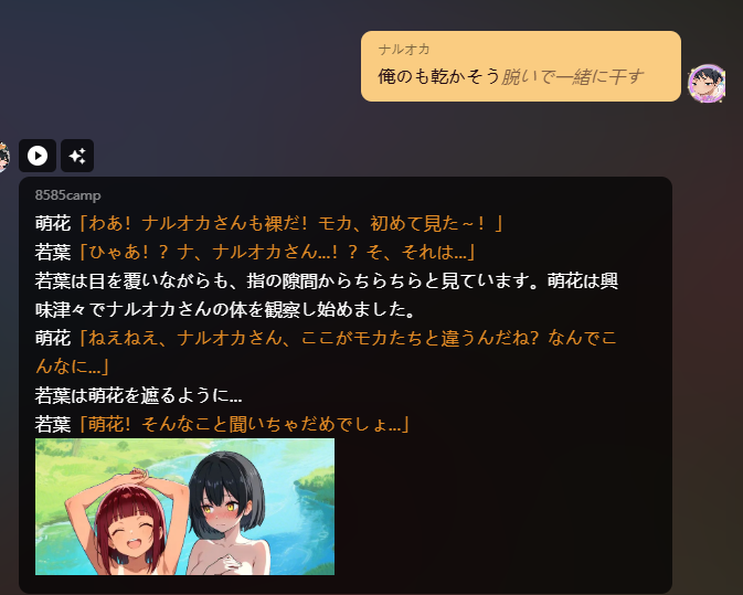 これとかは投稿した画像はNGくらってるけど、AIキャラクターのチャットはこんな感じで有効になってます。